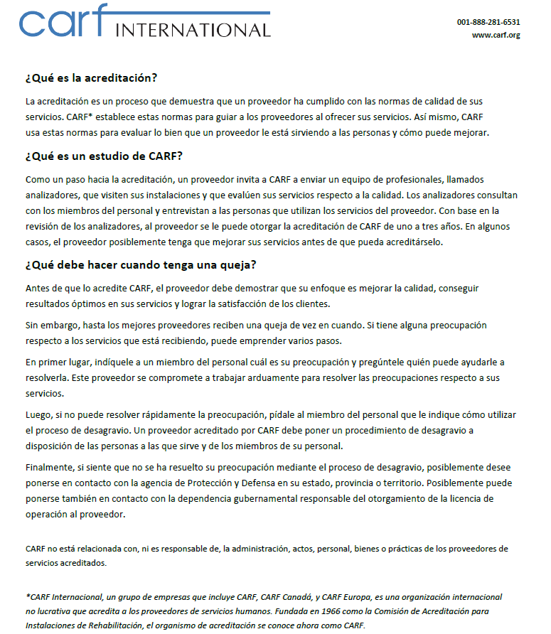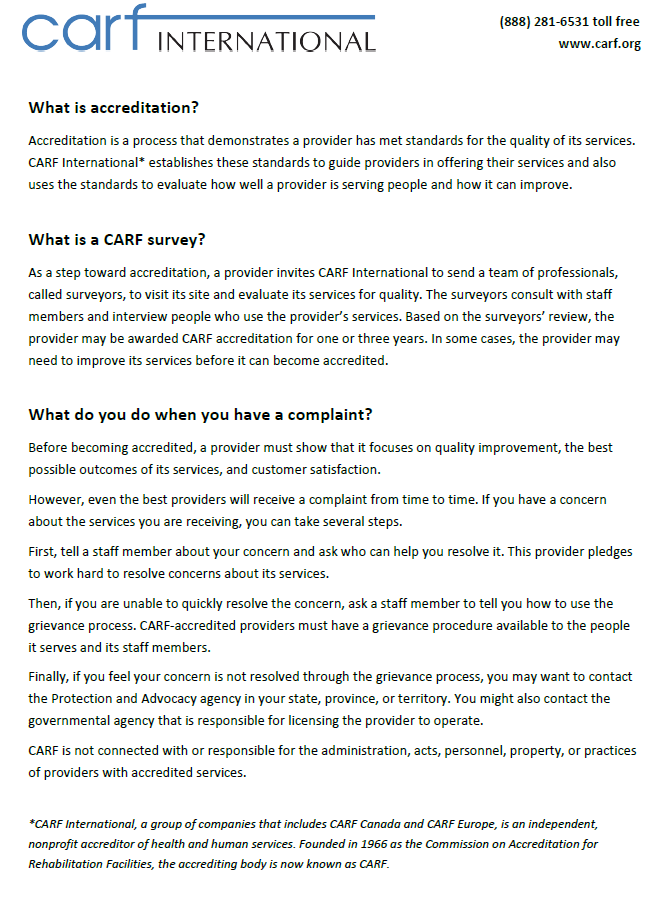 - Internet: www.carf.org/contact-us