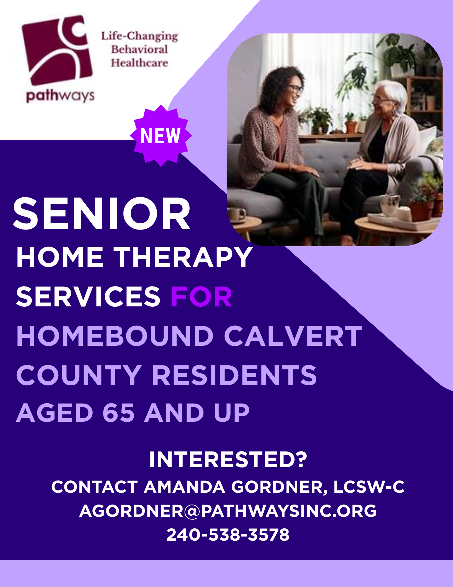 Our counseling and psychotherapeutic services provide access to affordable, long-term therapy to the communities in Southern Maryland, including families and couples seeking help for relational problems. Age range spans the lifespan. Our youngest consumers are around 5 years old- and our oldest are in their 80s!